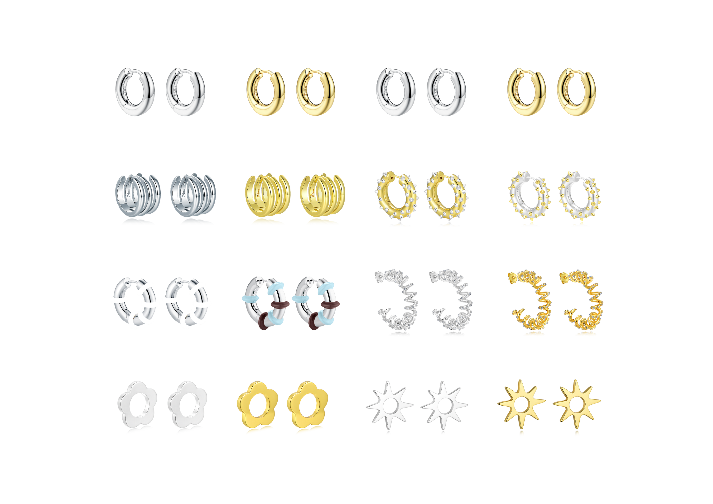 Mini Gold Hoops & Medium Gold/Silver Spike Hoops